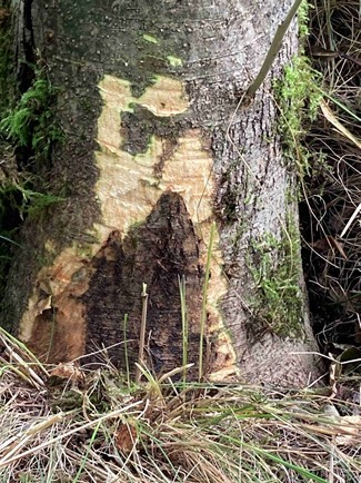 Les nécroses au collet sont visibles sur les arbres sub-adultes ou adultes dans des frênaies denses et très infectées. Elles sont le signe d'un stade très avancé de la maladie et d'une grande vulnérabilité des arbres.