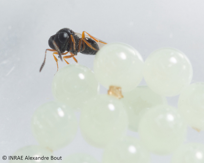 Trissolcus basalis parasitoïde des œufs de Halyomorpha halys