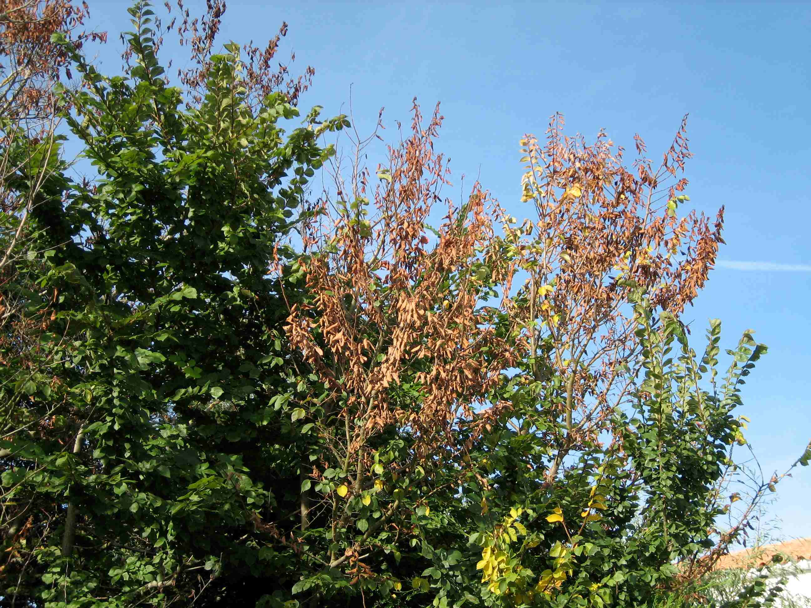 - Mortalité de branches et parfois de l’arbre entier.