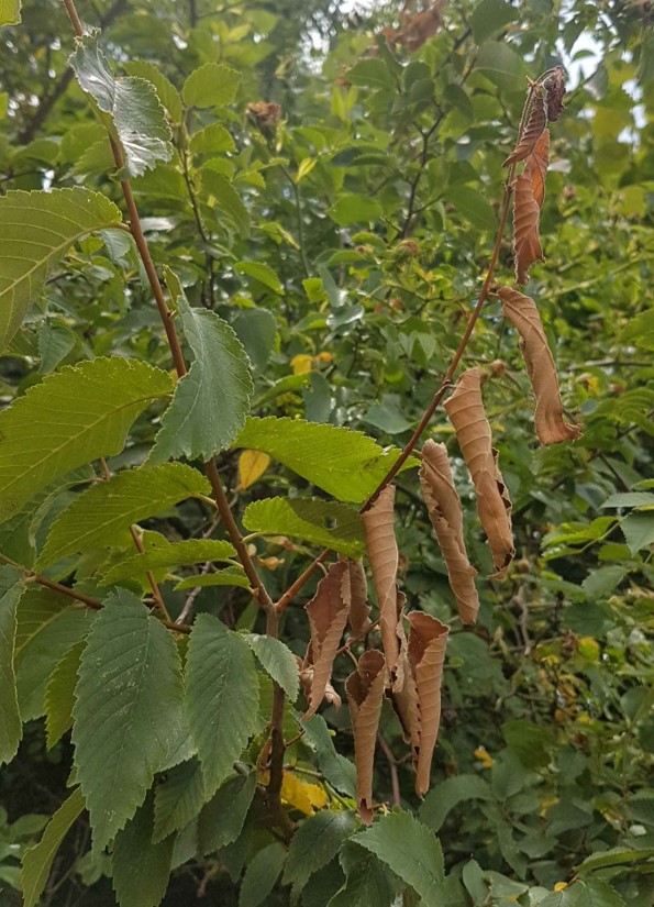 L'orme champêtre (Ulmus minor), l'orme lisse (U. laevis) et l'orme de montagne (U. glabra) sont tous sensibles. U. minor est le plus vulnérable, notamment en raison de sa forte appétence pour les scolytes.