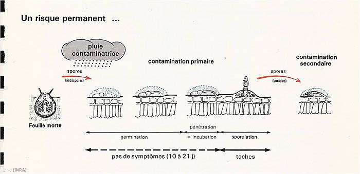 Le schéma ci-dessous concerne la tavelure de conservation (voir légende):