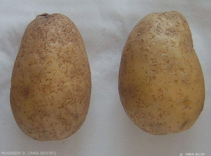 Des dommages directs peuvent être observés sur les tubercules, sous forme de petites zones nécrotiques superficielles (figure 6).