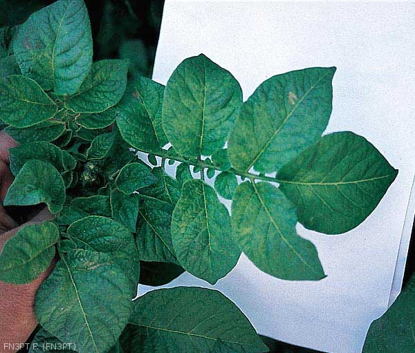 Selon l’isolat viral, le cultivar de pomme de terre et la co-infection avec d’autres virus, les symptômes dûs au PVX peuvent être une latence complète, des mosaïques légères ou plus prononcées et des déformations foliaires.
