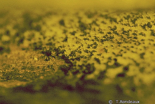 Les fructifications dues à la dartrose (microsclérotes) sont plus grosses que dans le cas de la gale argentée (conidiophores) (figure 7).