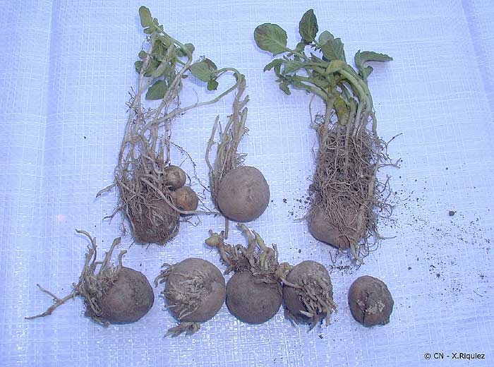 - zones proéminentes brunes en surface du tubercule après application du CIPC sur tubercules humides et/ou fraîchement récoltés (moins de deux semaines) (figures 1 et 2),
