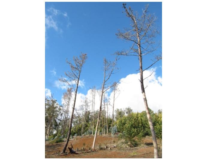 Le nématode du pin peut conduire à l’apparition de symptômes sévères, allant jusqu’au flétrissement généralisé des arbres puis leur mort.