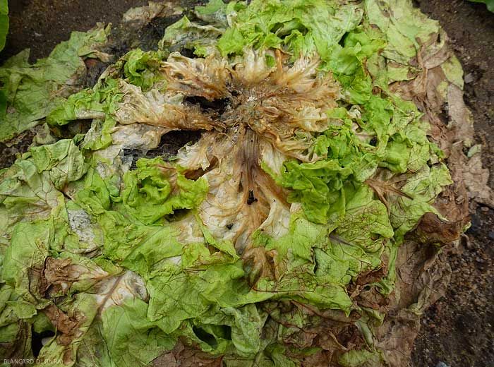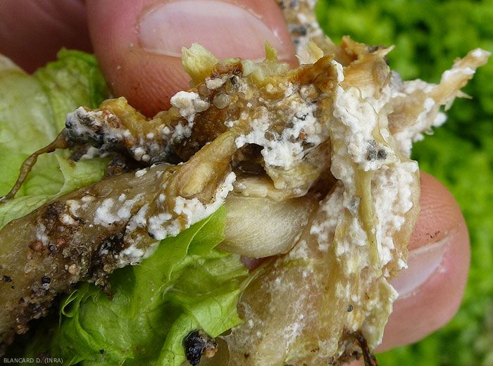 - Capable de s'attaquer à de nombreux hôtes, mais à beaucoup moins que S. sclerotiorum (tout de même sur plus de 90 espèces végétales). Dans son cas, le niveau des attaques est étroitement corrélé avec le nombre de sclérotes présents dans le sol.