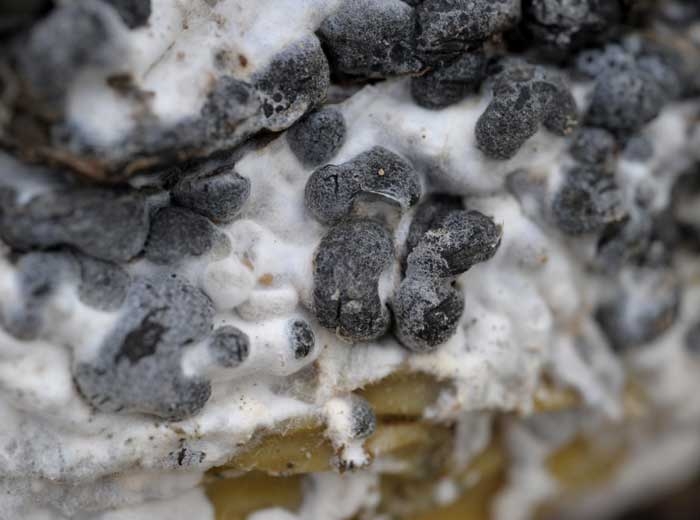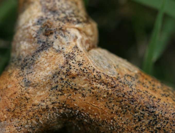 Conseils : lorsque vous suspectez le parasitisme d"un champignon susceptible de produire des sclérotes, placez des échantillons dans une poche en plastique et il en formera rapidement dans ces conditions humides.