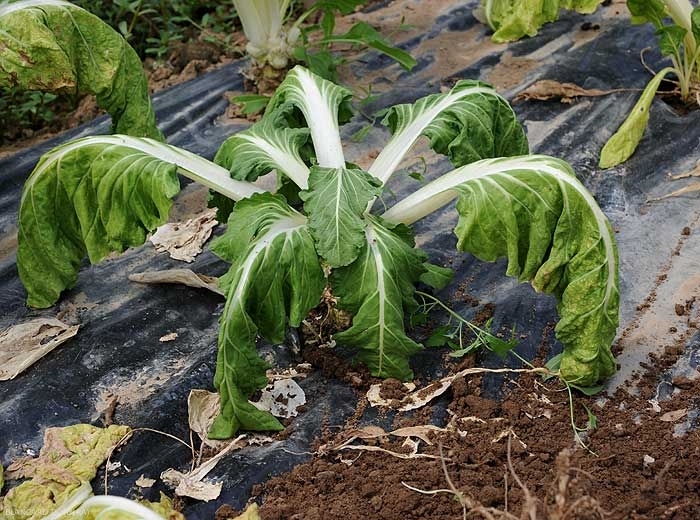 - flétrissement (accompagné ou non par un jaunissement) et dessèchement : bioagresseurs telluriques racinaires ou vasculaires, champignons responsables de chancres sur tiges, asphyxie, manque d'eau, etc. (figure 7).
