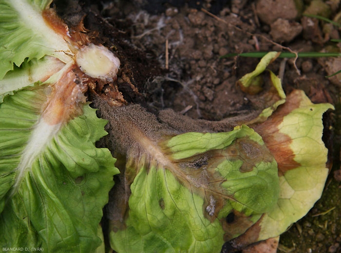 Un flétrissement foliaire (accompagné ou non d'un jaunissement), un dessèchement, voire un blocage du développement de la végétation doivent vous inciter à inspecter attentivement le collet.
