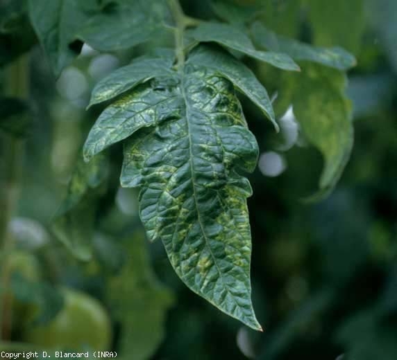 - Symptômes types : rabougrissement et nanisme, mosaïques et symptômes assimilés, jaunissements, déformations diverses (cloques, énations, filiformie…), lésions localisées chlorotiques à nécrotiques (taches, anneaux, etc.), motifs divers et arabesques, nécroses nervaires et sur tiges, etc. Notons que certains virus affectent les plantes sans provoquer de symtômes apparents.