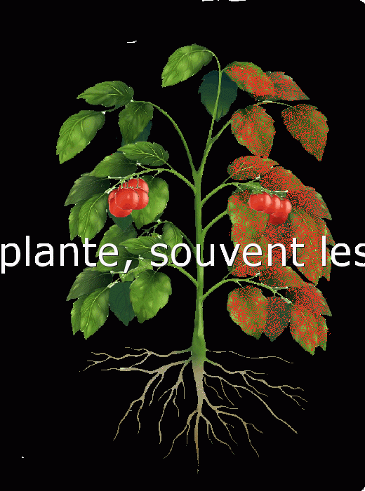Symptômes couramment observés: jaunissement et/ou flétrissement (parfois sectoriels sur le limbe), lésions foliaires plus ou moins nombreuses, étendues et nécrotiques, brûlures, etc.