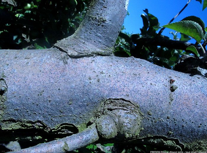 Des attaques secondaires par des insectes xylophages, des scolytes en particulier, sont fréquentes. Les piqûres sur fruits sont auréolées de rouge sur l’épiderme (figures 2 et 3).