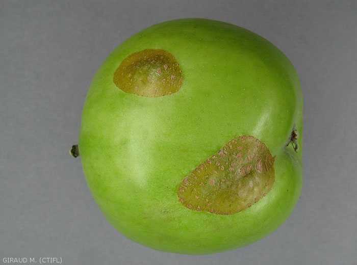 - au printemps, les larves se nourrissent de bourgeons qu’elles détruisent puis de feuilles qu’elles enroulent ou rassemblent. Les attaques sur jeunes fruits entraînent des malformations (figures 1et 2).