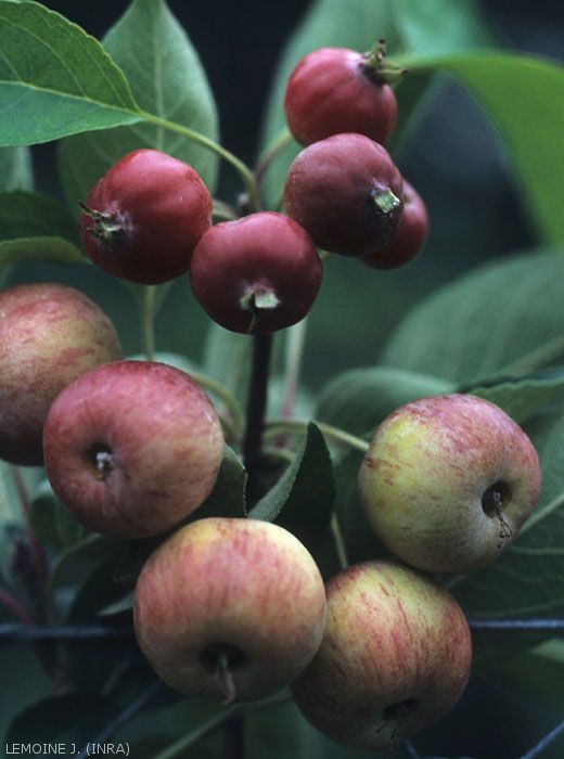 Seul le cultivar Virginia Crab exprime quelques symptômes du fait de sa résistance à ce virus. S’il est greffé sur des sujets infectés, sa croissance paraît normale pendant un à trois ans, mais une nécrose s’est développée à l’union et va couper toute circulation de la sève.