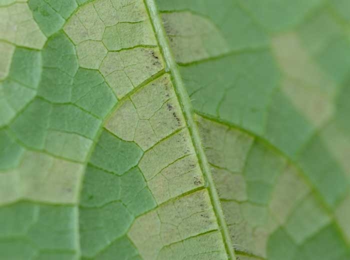 - Description : lésions plus ou moins étendues, aux contours partiellement ou totalement délimités par les nervures présentes sur le limbe.