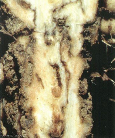 Un scolyte, Hylastinus obscurus (Coleoptera,Curculionidae) (figure) est trouvé préférentiellement sur les cultures agées de trèfle. L'adulte hiberne dans le collet de la plante. Les larves creusent des galeries dans les pivots (figure) faisant pourrir ceux-ci, ce qui nuit à la pérennité de la culture.