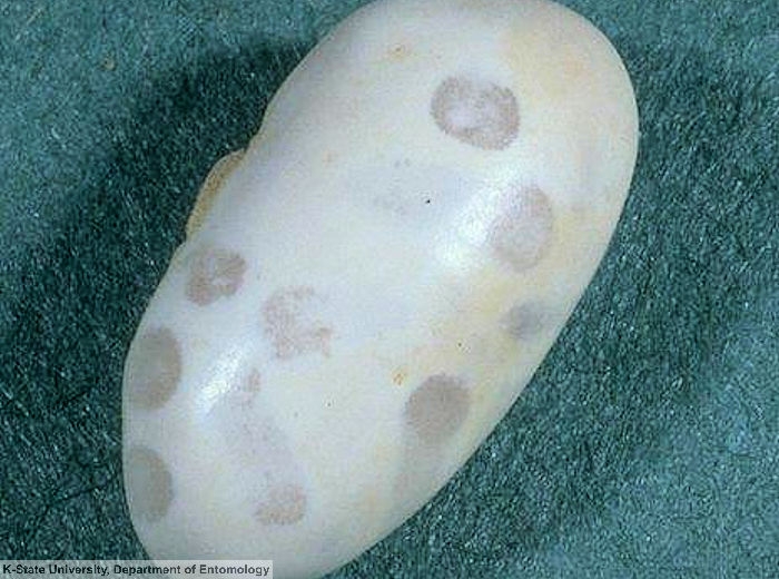 - présence d’œufs à l’extérieur ou à l’intérieur de la gousse, de larves à l’intérieur de la gousse et dans les grains