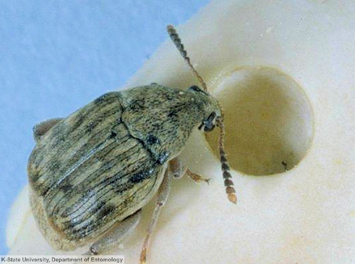 Acanthoscelides obtectus est un coléoptère se développant essentiellement sur le haricot, plus rarement sur le soja et la lentille. On le retrouve aussi bien sur les plantes que les graines stockées.