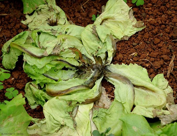 - Jaunissement et flétrissement foliaires, et effondrement et mort de plantes ;