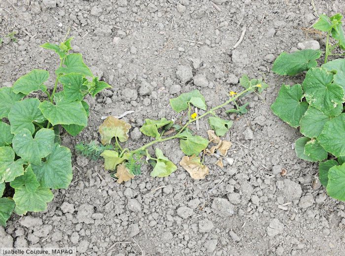 - pour la culture suivante : détruire les résidus de culture infectés, pratiquer des rotations de 3-4 ans sans concombre