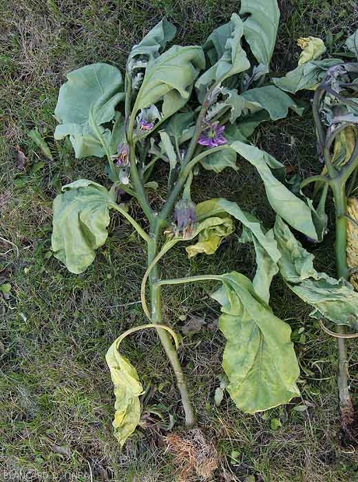 - Signes : feutrage mycélien cotonneux blanc et aérien recouvrant plus ou moins les lésions en conditions humides. Des sporanges, des oospores, des chlamydospores peuvent être observées grâce à une microscope photonique dans les tissus dégradés.