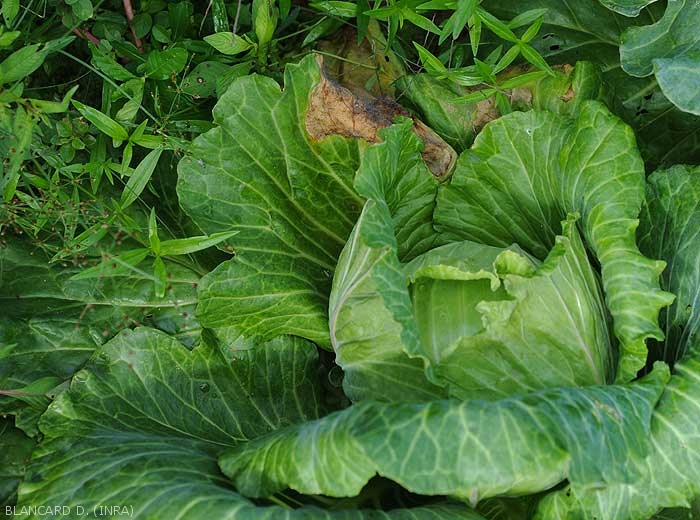 La pourriture peut par la suite gagner d'autres feuilles en contact.