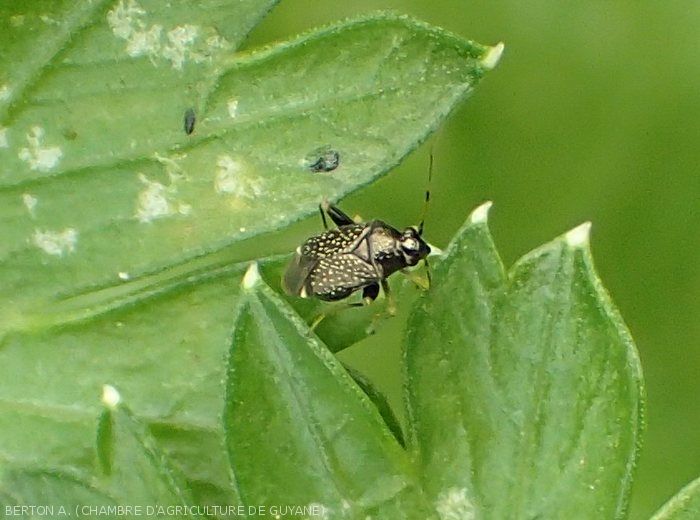 - Punaise parasitant de nombreuses plantes comme le soja, le riz, divers légumes (aubergine, concombre, tomate, poivron, haricot), ainsi que des adventices qui assurent sa multiplication et servent de sources d'infestation.