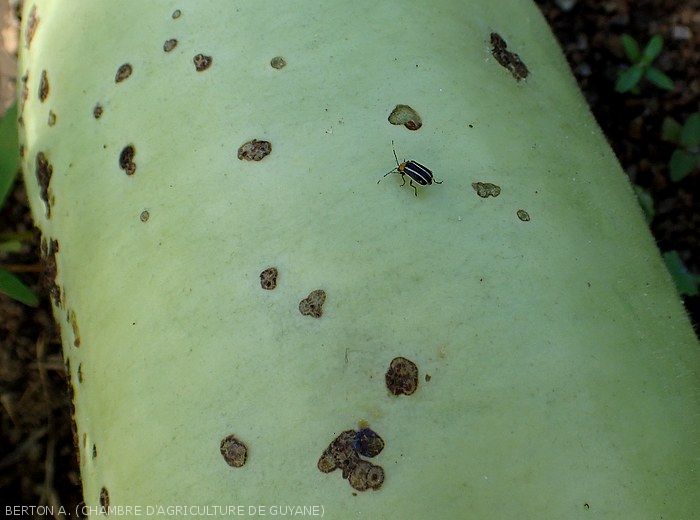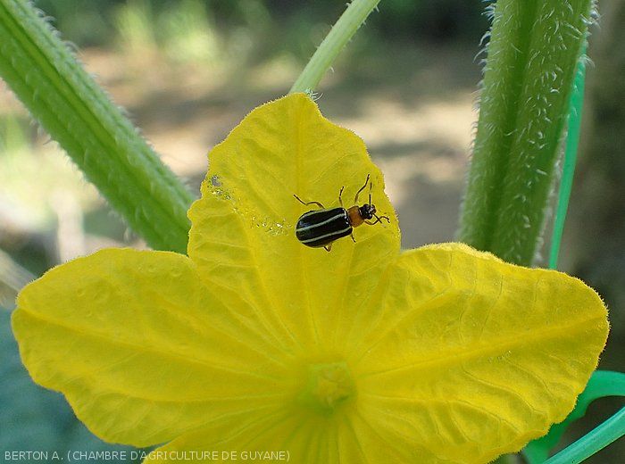 Il existe assez peu de connaissances sur cette chrysomèle qui est pourtant très dommageable aux cultures de cucurbitacées en Guyane. La chrysomèle du concombre appartient à la sous-famille des Galerucinea.