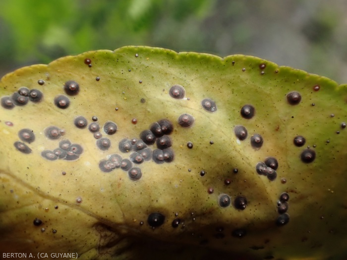 - Fumagine, formant un dépôt noirâtre ayant l'aspect de la suie. La fumagine diminue la photosynthèse et bloque la croissance de l'arbre.