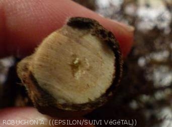 • Absence de nécrose des vaisseaux conducteurs --> verticiliose écartée.
