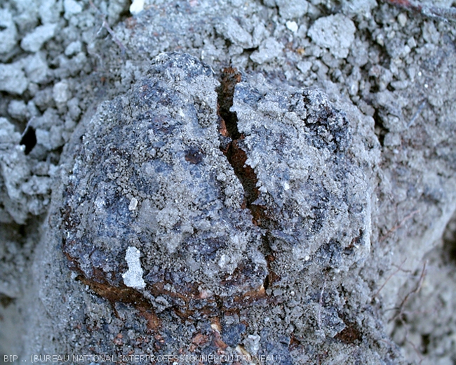 Au niveau du collet du tronc et/ou sur les racines, on peut observer la présence de galles / nodules.