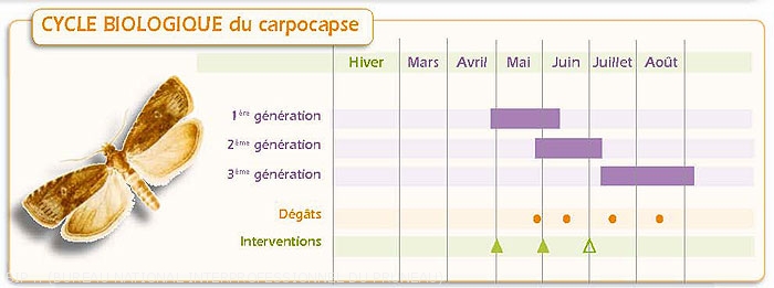 - Il existe deux périodes clés pour limiter le développement du carpocapse des prunes : en début de première génération, puis en début de deuxième génération. Lorsque les deux premières générations sont bien contrôlées, le risque lié à la troisième génération est en général minime.