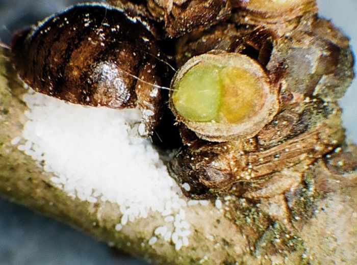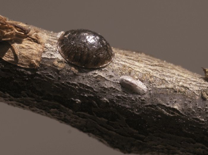 - Lorsque les cochenilles sont sous leurs boucliers, elles sont "inatteignables". Le stade optimal pour intervenir contre la cochenille du cornouiller est donc avant débourrement des bourgeons pour atteindre les larves hivernantes, non protégées.