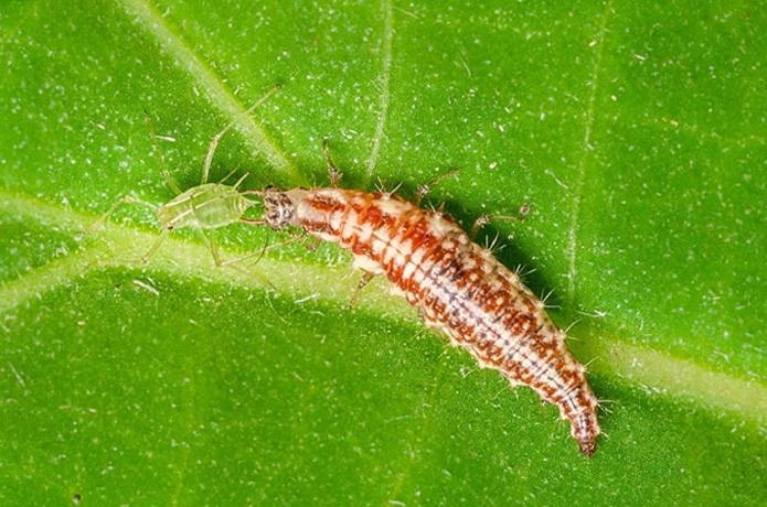Proies : 400 à 700 pucerons en 10 jours pour une larve de syrphe
