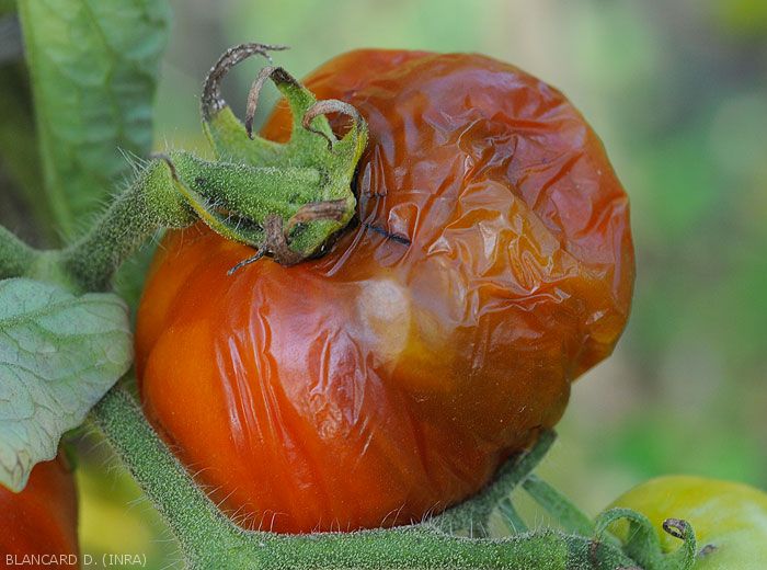 - Sur jeune fruits de tomate, les premières attaques apparaissent très tôt, une dizaine de jours après floraison, lorsque leur diamètre atteint 2 cm. Le taux d'attaques augmente ensuite rapidement et atteint son maximum environ 3 semaines après floraison. Par la suite, les fruits plus âgés peuvent encore être piqués, quoique plus faiblement.