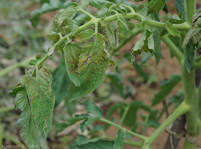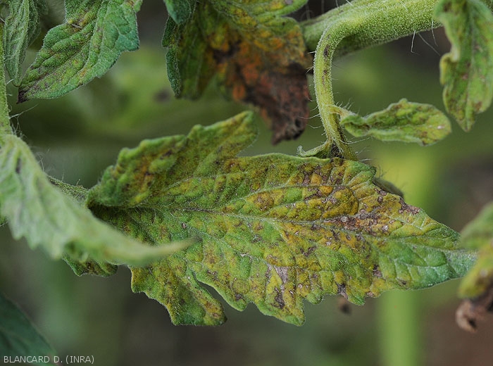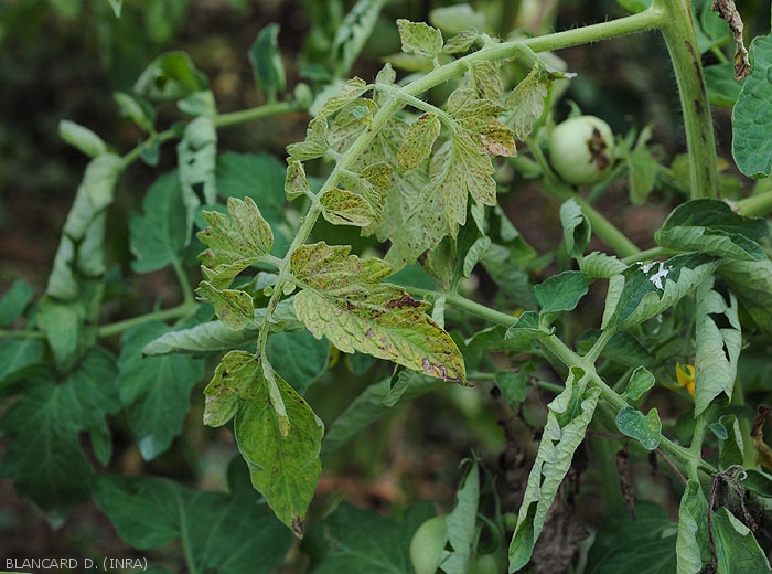 - Folioles, plutôt chlorotiques, prennant progressivement une teinte bronzée (figure 7-tomate).