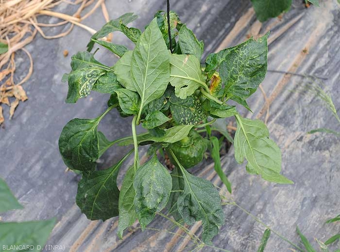 - Mosaïque plus ou moins marquées sur folioles et feuilles(figures 13 et 14-poivron)