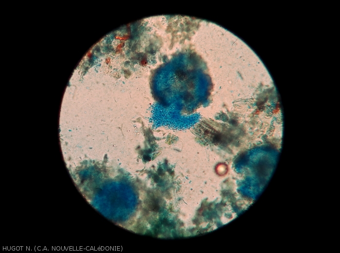 Confusions possibles : mildiou du taro (Phytophthora colocassiae) qui est une maladie absente de Nouvelle-Calédonie, corynesporiose, etc.