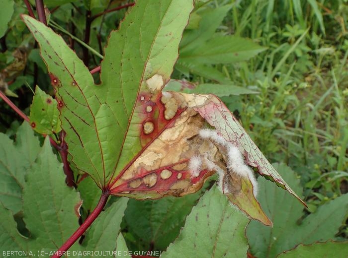 Sur les malavacées en Guyane, le rhizoctone foliaire est uniquement répertorié sur oseille de Guinées (Hibiscus sabdariffa)