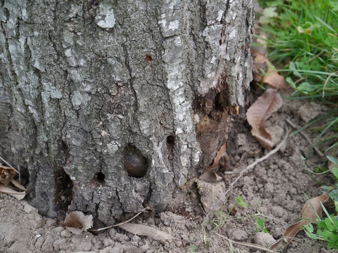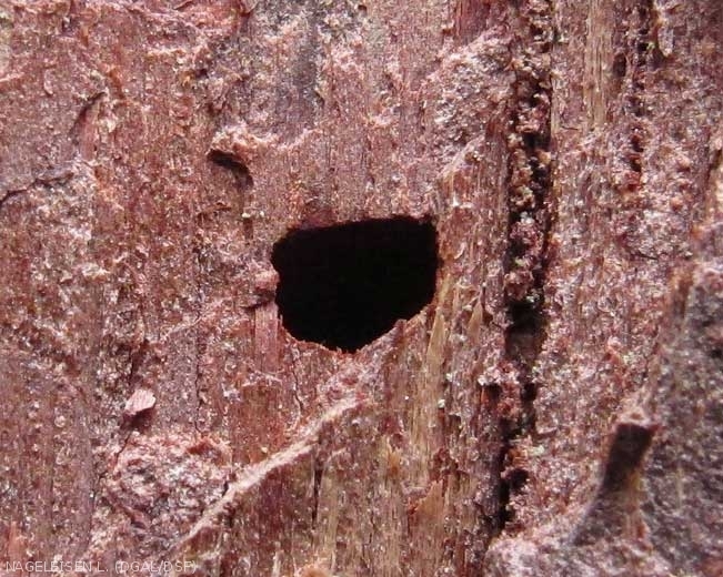 Les orifices d'entrées/sorties et la présence de sciure permettent d'établir un diagnostic en faveur de la présence de ces insectes (Figures 1 et 2).
