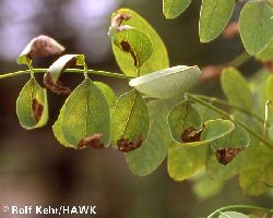 - la septoriose = Septoria=Phloeospora robiniae : taches foliaires et pétioles + chute des feuilles.