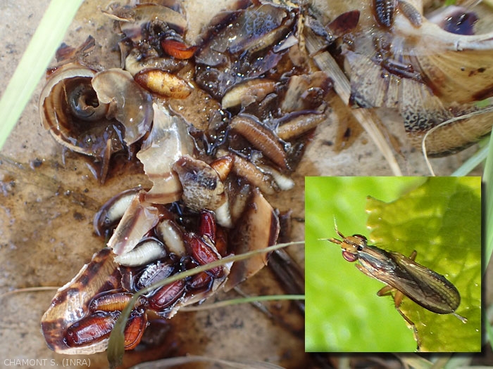 Ces gastéropodes sont polyphages, de moeurs nocturnes, hibernant au sol puis montant sur les ceps dès le réchauffement des températures surtout si le printemps est humide (figure 1). Ces ravageurs vont alors consommer les jeunes pousses, lors du débourrement (figure 2). Sur les feuilles plus agées, les escargots s'attaquent aux limbes mais laissent les nervures. Les dégâts peuvent être importants en période pluvieuse. Les manchons de protection des jeunes vignes favorisent leur concentration.