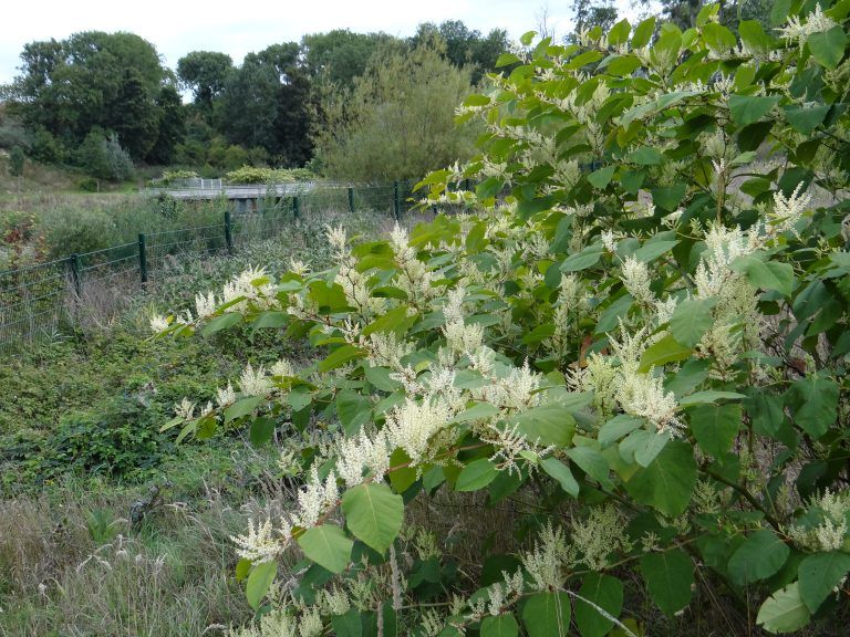 Les feuilles inférieures des renouées du Japon ont un limbe ovale triangulaire et atteignent une longueur de 15-18 cm. Alors que les feuilles des renouées de Sakhaline et de Bohème sont ovales-lancéolées, possèdent des poils foliaires au niveau des nervures de la face inférieures, et peuvent atteindre 40 cm de long. Les petites fleurs blanches apparaissent en septembre/octobre. Elles sont hermaphrodites avec de larges étamines et facilement pollinisées par les insectes en raison de l’abondance de nectar. Cependant les graines peu fertiles interviennent que très secondairement dans la dissémination de la plante.