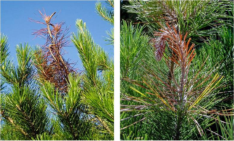 Les dégâts sur pins augmentent sur les arbres affaiblis par des épisodes de stress hydrique, dans les sols superficiels ou engorgés d’eau, ainsi que dans les plantations à forte densité ou dans les sols à teneur en azote élevée.