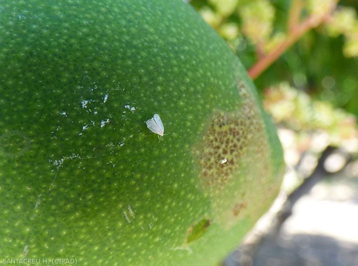 La femelle d'Aleurodicus dispersus forme des spirales lorsqu'elle pond ses œufs sur la face inférieure des feuilles ou sur les fruits.