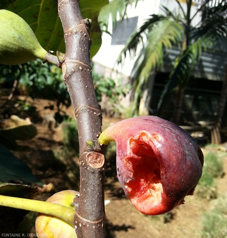 Les oiseaux sont des animaux opportunistes. En consommant le fruit, ils vont l'endommager, ce qui facilitera l'entrée d'organismes dans la plante.