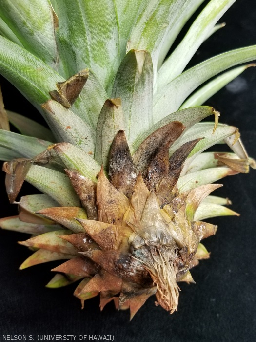 Elle est causée par Ceratocystis paradoxa (forme sexuée). Cette maladie peut se propager par l'empilement des rejets et des fruits. Ainsi elle peut contaminer la totalité de la pile. Le développement de la zone infectée se fait plus rapidement lors de périodes humides car la propagation des spores est facilitée.