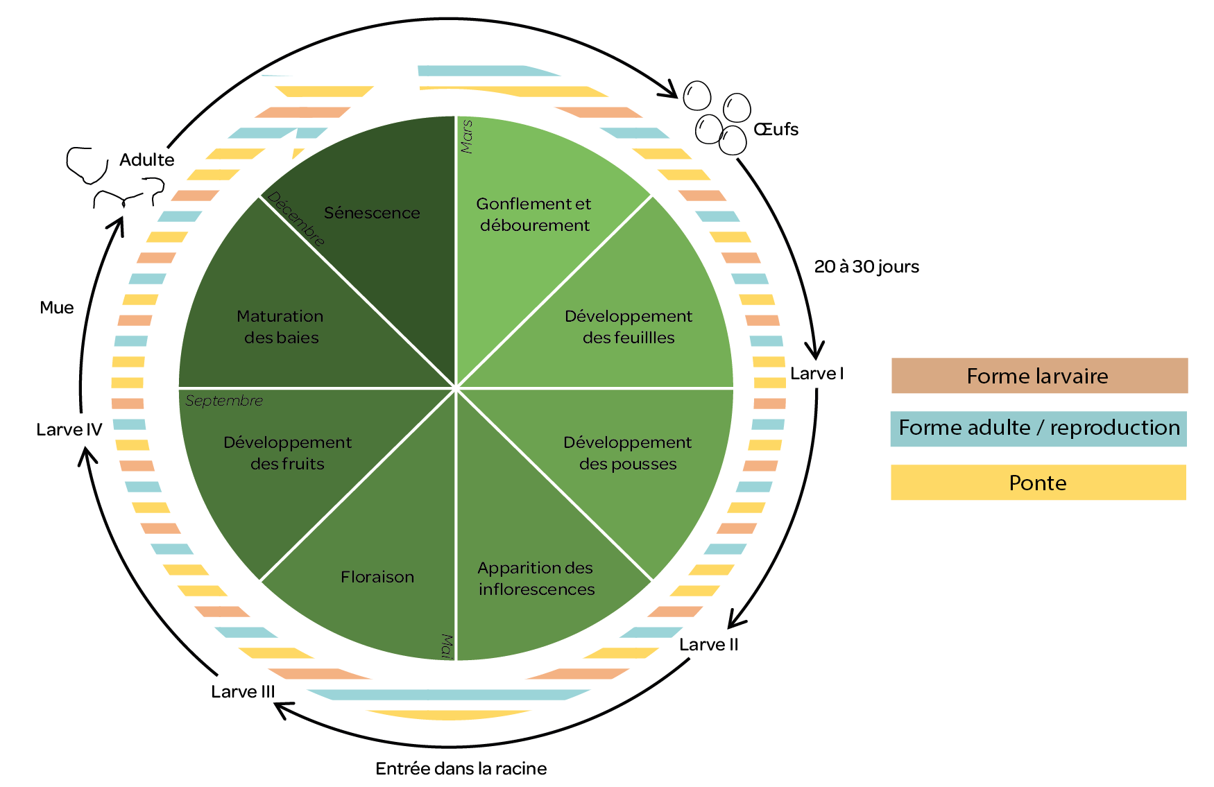 - Les femelles restent dans la racine pour y pondre leurs oeufs.