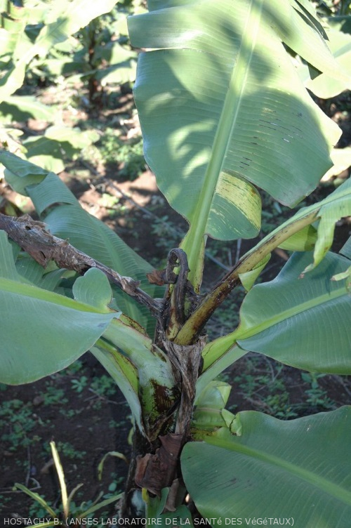 - Dans les cas de nécroses vasculaires, confusion possibles avec des maladies comme FOC TR4 ou Moko, mais le bananier ne présente pas de flétrissement.